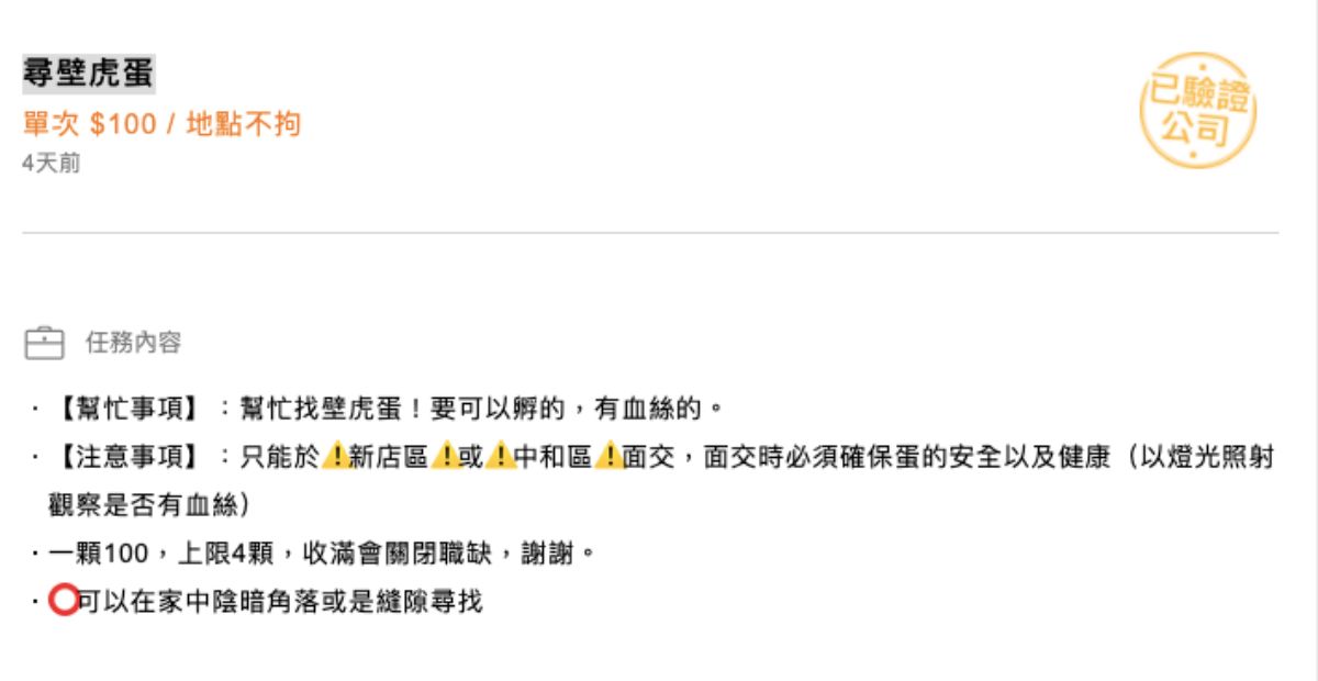 現在不只是可以在網路上求網友們給意見,竟然還能直接花錢徵別人做任何奇葩任務,果然能用錢解決的事情都不是什麼大事~防疫期間沒工作、缺零用錢嗎?那大家也許可以上《小雞上工》找找,有沒有什麼好賺的外快喔!但大家還是要小心,謹慎確定自身安全再考慮要不要幫忙。