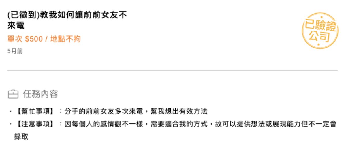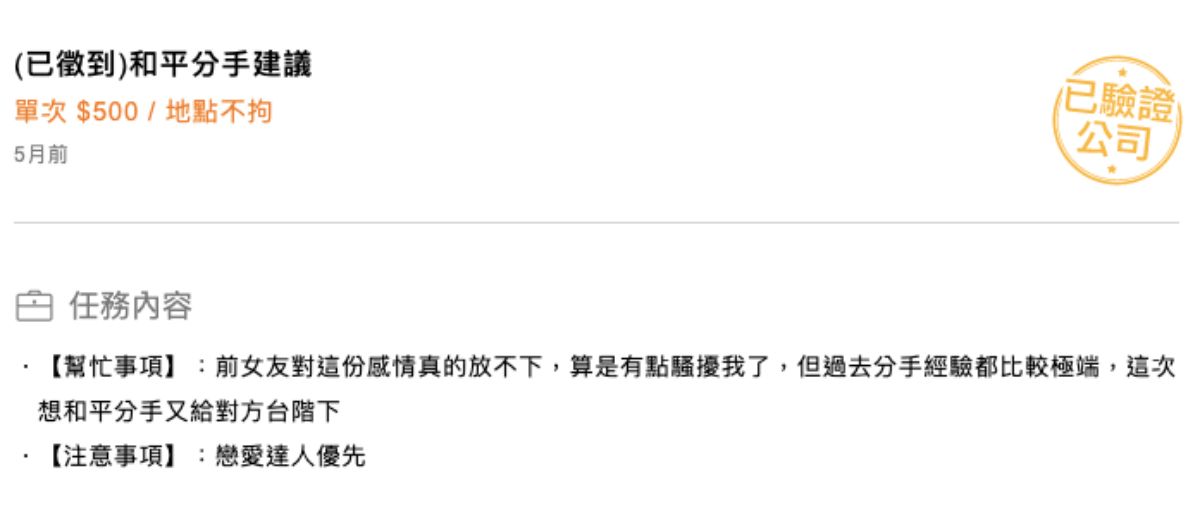 戀愛大師不夠!現在需要的是分手達人呀!被前女友纏上、想和平分手又開不了口?那就上網徵一個人協助你吧~不過看到男友為了分手還花錢雇人來幫忙,這還不夠心死嗎(笑死絕對馬上分啊)。