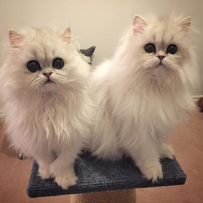 Milk&Oreo是對名字聽起來很可口,本尊也是可愛到想讓人揉兩把的雙子金吉拉~才8個月大的牠們擁有白色蓬鬆軟毛搭配無辜感十足的藍眼睛,毛茸茸的外表就算擺在玻璃櫥窗裡也毫、無、違、和!(可以買回家嗎?拜託)兩隻貓的高顏值說是貓界的歐森姊妹花也不為過~目前牠們Instagram的追蹤人數已經有1萬5千多人,可是相當具有人氣喔!