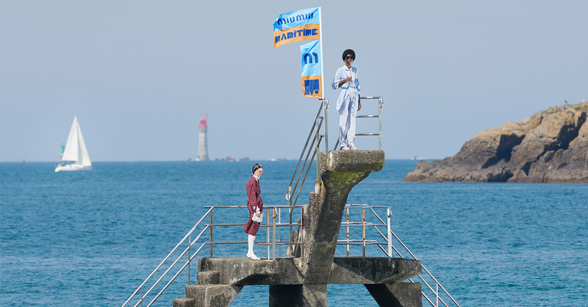 碧海藍天之間,一眾 Miu Miu 女水手置身法國聖馬洛 Plage de Bon-Secours 浴場的混凝土壁壘,颯爽身姿留存攝影師 Johnny Dufort 鏡頭,浴場與海相通,人與自然共生。 水陸相遇處,Miu Miu 水手遙望天際,期許全新開始,遐想別樣時節,尋覓不同視角,嚮往廣闊視野。 一如既往,Miu Miu 女性集結陣營,在此,她們變身海軍艦隊成員,身著水手制服,喻示彼此關係。