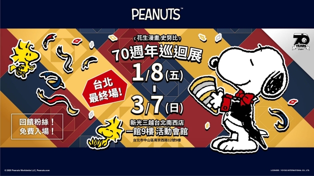 呼叫史努比的粉絲們!今年逢SNOOPY誕生70週年,為了歡慶這個盛大的日子《PEANUTS™花生漫畫-70週年巡迴展》在六月份於台南和台中登場(回顧點我),終於在北部的妞妞們敲碗下,於2021年1月8日盛大開展,展期一路到3月7日,免費入場,地點就位在「新光三越台北南西店」,現場不僅會有大扭蛋機,還會有70週年限定紀念商品!