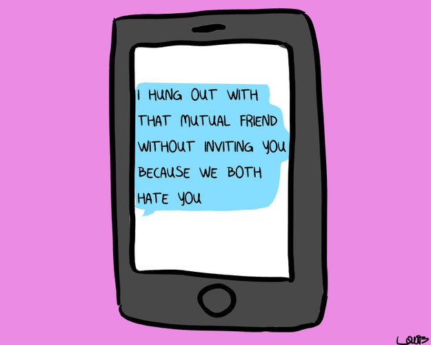 其實他聽成:「我跟我們共同的朋友出去是因為我們討厭你!」