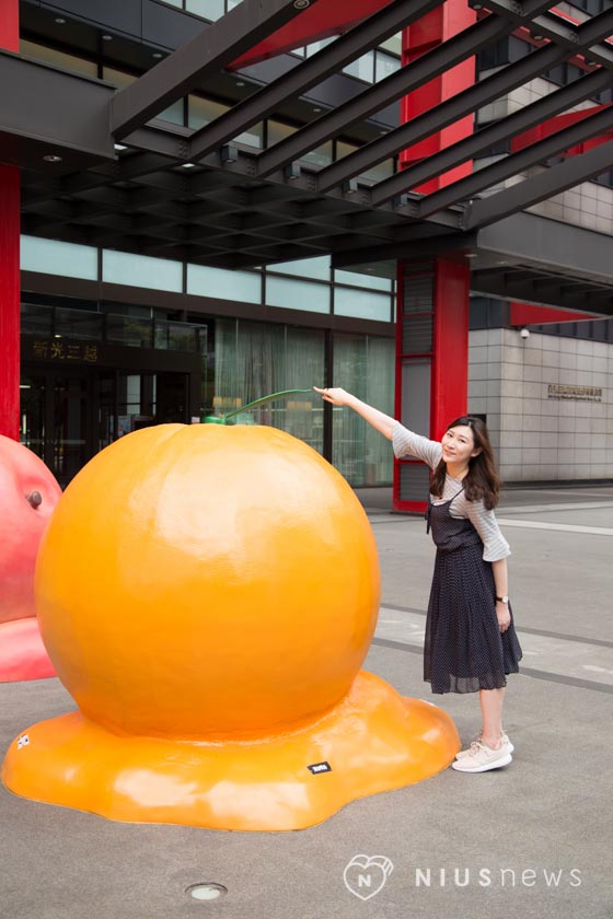 而往戶外看不只有冰棒存在,熱鬧的廣場上可以發現到,欸!這不是水果嗎?就連香蕉和草莓們也都被炎熱的天氣給融化了嗎!!(你融我融~覺得療癒~)原來這一區是主題【水。果。事】的裝置藝術呢!這些水果也都充滿著濃郁的夏日風情~