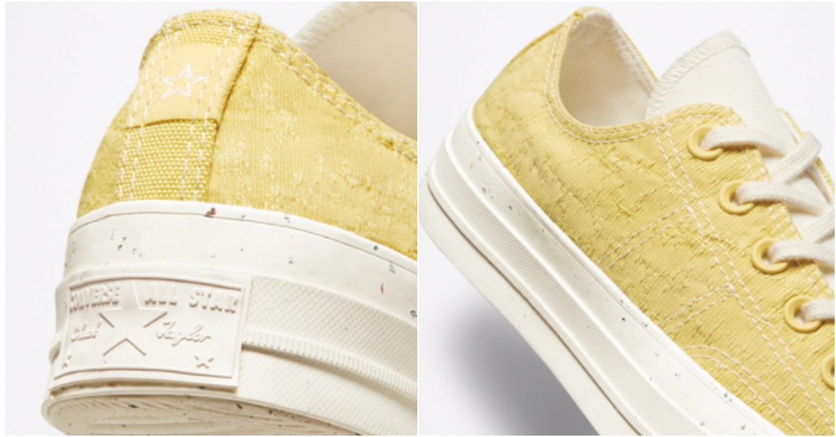 這雙在韓國上架的「小雛菊帆布鞋」太美啦!以蜂蜜奶油黃勾勒的低筒Hybrid Texture Chuck 70,在鞋面可以發現獨特的紋路感,鞋帶、鞋底搭配清新的奶油白色,整雙營造出滿滿的溫柔氛圍~