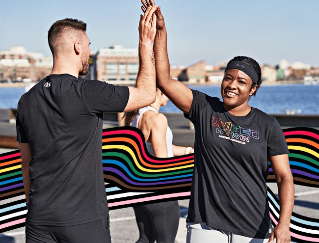運動揮汗時刻,也要「彩虹式」全副武裝!UNDER ARMOUR的UA Pride彩虹運動裝備,以「Rainbow Road」彩虹之路作為核心設計理念,運動內衣、短褲等單品都以黑、白為基本色系,每一件都加入「彎曲的彩虹線條」為設計,講述這條平權之路從不平坦,短袖上衣上則裝飾「United We Win」精神標語,象徵當全世界的人團結一致,才能讓世界更加美好~
