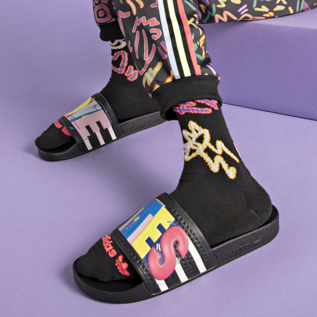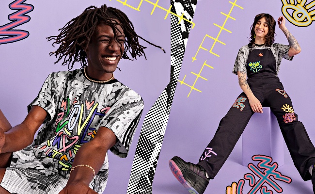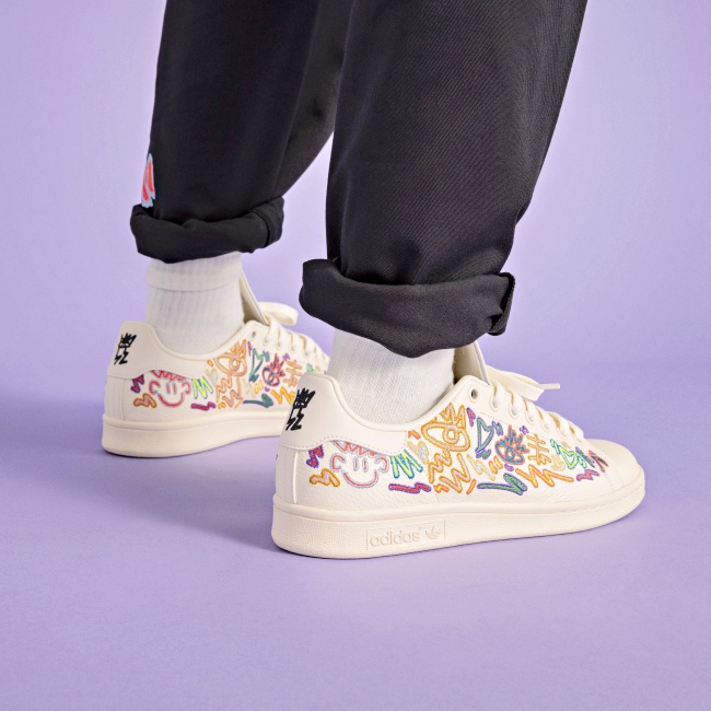 adidas Originals攜手澳洲藝術家Kris Andrew Small推出的全新系列,以70年代和80年代的POP藝術與平面設計為啟發,打造工裝連身褲、T-shirt、短褲、鞋款、配件等色彩繽紛的時髦單品,每一款都能找到具有藝術感的魅力塗鴉,搭配黑、白基本色系,不用擔心太花俏,妞編輯就大推彩虹塗鴉版本的STAN SMITH小白鞋,讓你的穿搭不無聊~