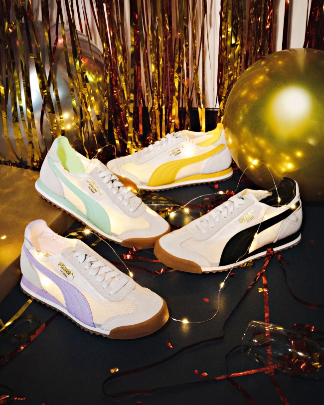 Capri帆布小白鞋,鞋底拼接「彩虹色果凍膠底」、Roma OG 鞋型整雙採用半透明鞋面打造,鞋側分別點綴純黑、鵝黃、薄荷綠、薰衣草紫4款彎刀配色,最後這雙爆款厚底神鞋Suede Mayu,則是將彩虹刺繡彎刀亮眼結合,無論哪雙都是整體造型的亮點。