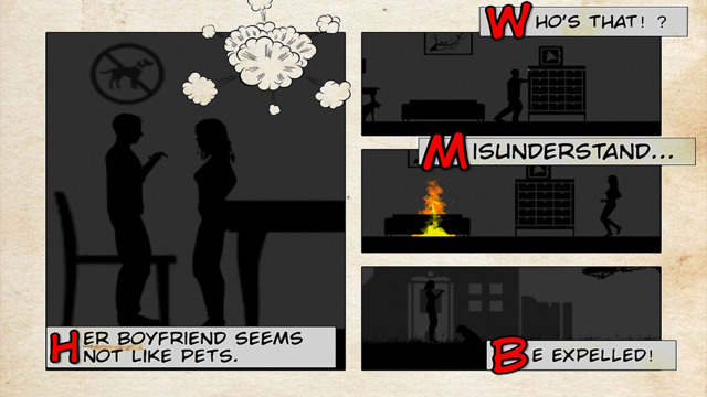 這款遊戲走一個觸發式劇情的路線,劇情的開端是一個令人傷心的故事,主角本來是隻擁有溫暖家庭的狗狗,但因為某種不知名的原因,女主人無情地將牠驅逐出去,於是牠開始了流浪的人生⋯遊戲呈現黑白漫畫的風格,沒有文字對白,玩家需隨意觸及畫面尋找可以讓故事推展的關鍵。