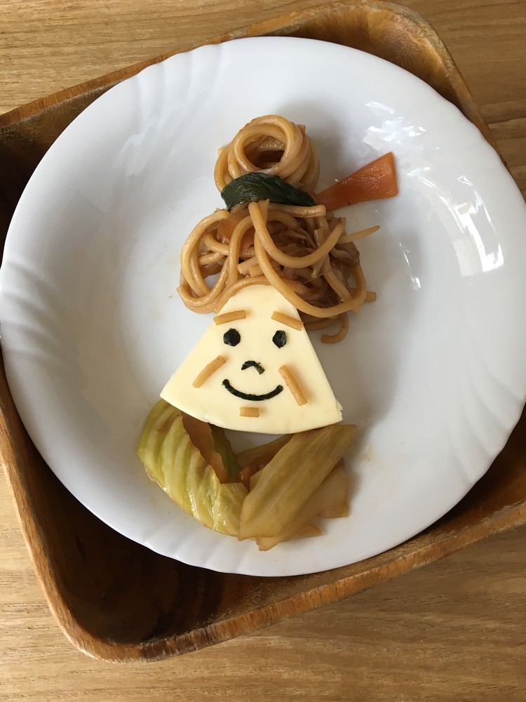 用麵條做髮絲,用海帶當髮圈,用高麗菜當和服,一個和藹可親的婆婆就此誕生!