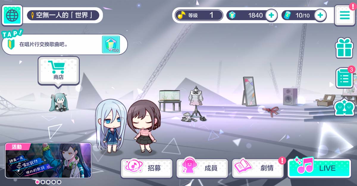 人氣音樂節奏手機遊戲《世界計畫 繽紛舞台! feat. 初音未來》已正式展開「總有一天,唱出能夠託付彼此的歌詞」活動,並同步開啟「等級1的夥伴招募」限定招募,除了參加活動之外,玩家還能在遊戲中觀看豐富的團體以及角色劇情,深入「世界」中的各個角落,探尋在此發生的各種精彩的故事,立刻點擊網址下載吧!