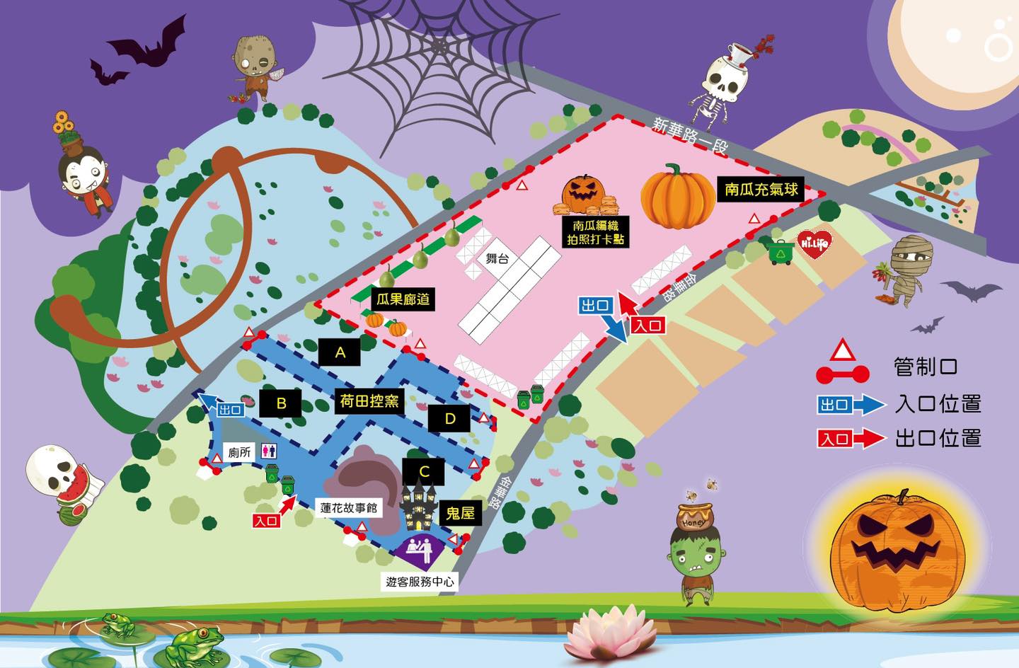 除了南瓜隧道以外,還有大王蓮、萬聖鬼屋、超巨大南瓜、南瓜巨人、南瓜迷宮、南瓜地景等等區域,每個地方都超殺底片~官方更製作了6隻可愛的萬聖主題鬼怪,妞妞們快來找出他們在哪裡吧。