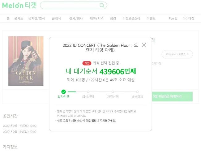 這次演唱會IU還刷新韓國女歌手紀錄,首度在可以容納8.8萬人的「最大場地」舉辦,不過開賣當天…卻湧入43萬以上人次搶票,一人需要等待超過122小時,直接塞爆購票網頁的驚人畫面也被截圖瘋傳,直到現在依舊大批粉絲哀號買不到:「拜託加場」、「跪求一張票啊!」