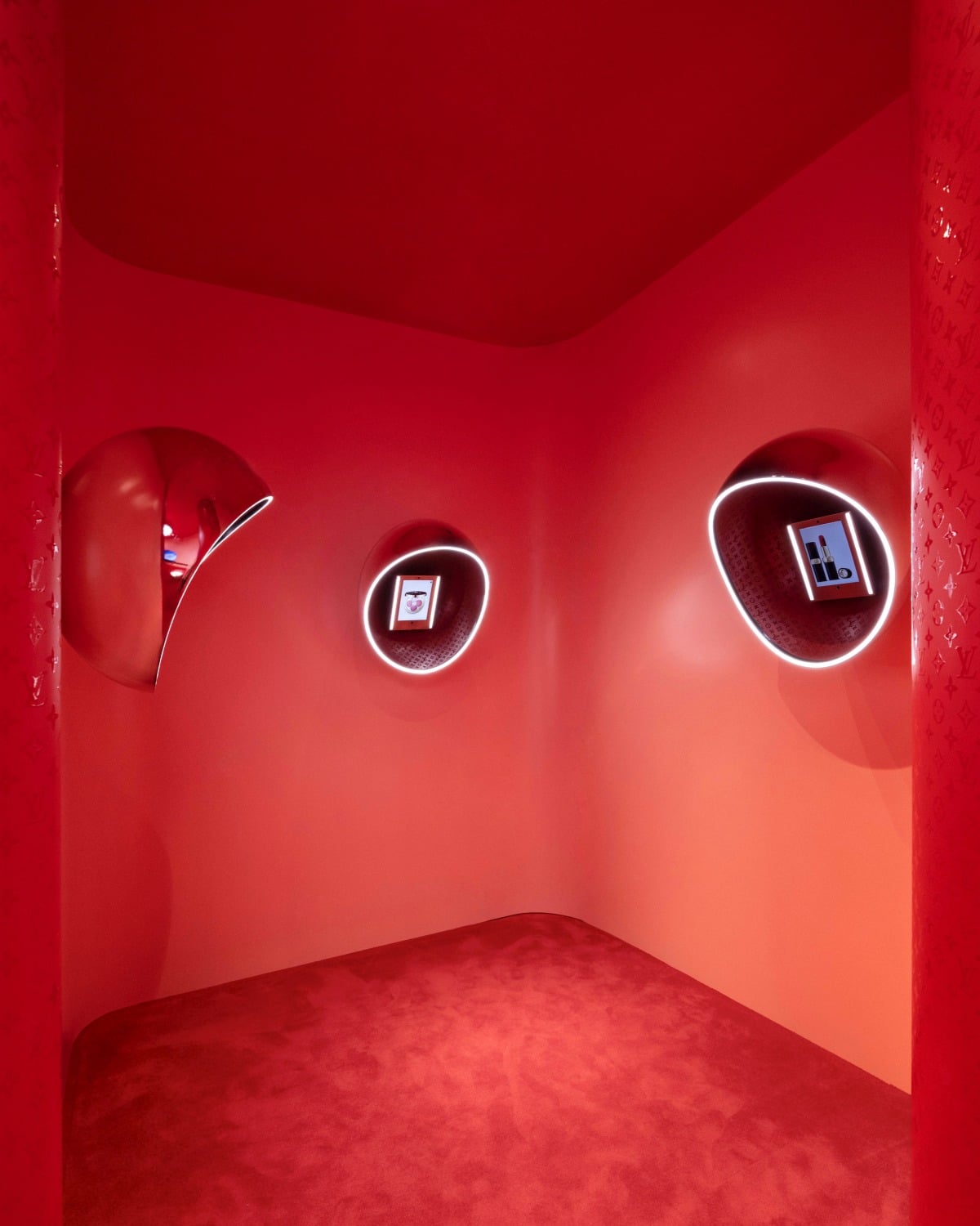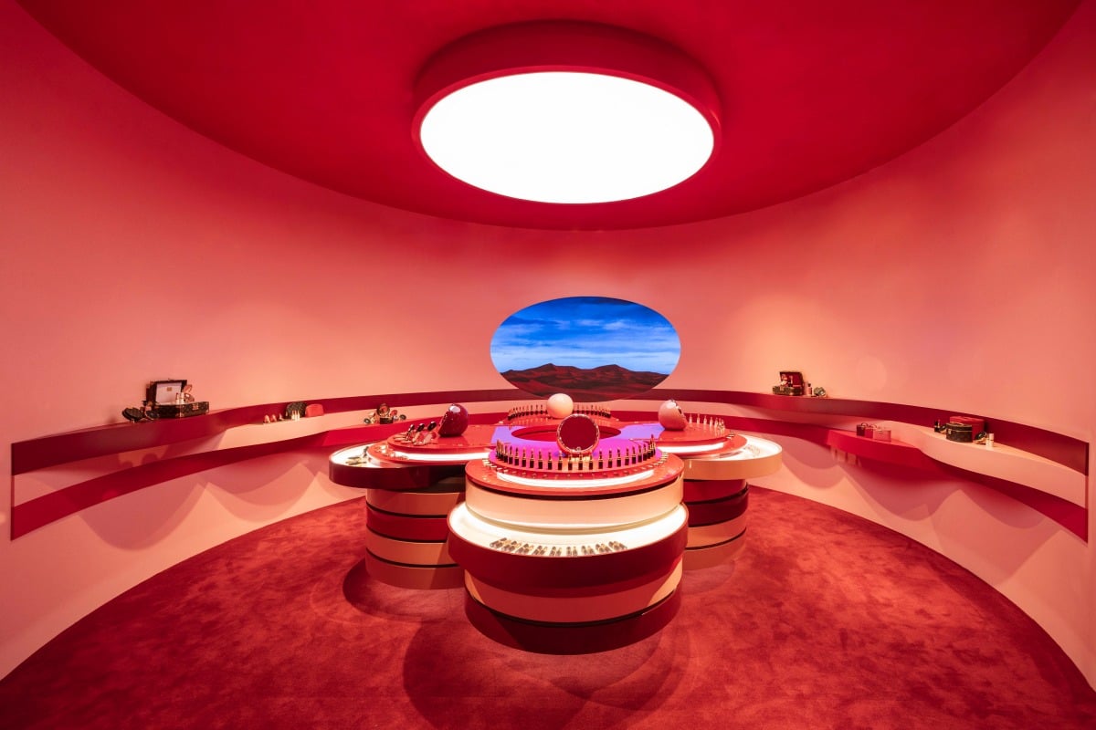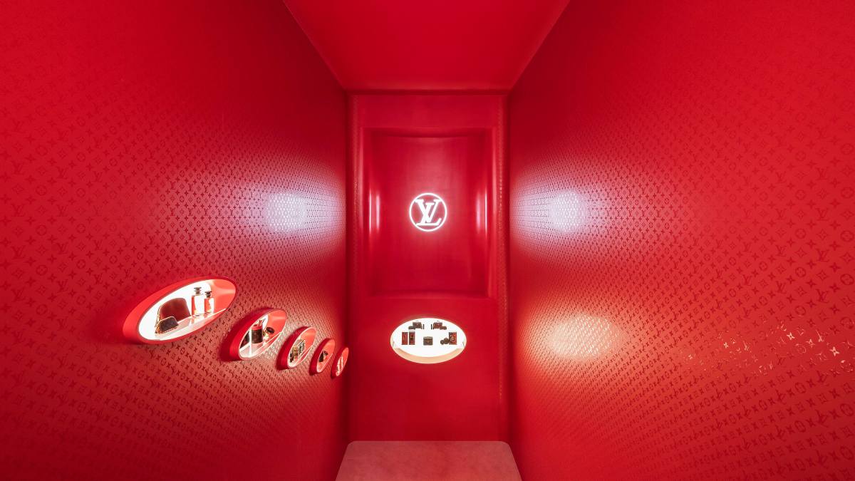不同於一般的精品彩妝專櫃,La Beauté彩妝實驗沙龍在台北微風信義2樓開了專門店,以「先鋒實驗室」為概念,整體視覺選用了標誌性的LVRouge 唇膏色號854路易紅,店內空間融合生活風格、沉浸體驗以及藝術彩妝,走進來就像展開一段關於「美的冒險旅程」。