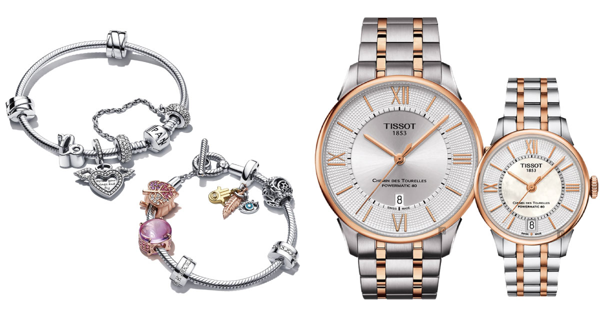 Pandora全新秋季珠寶系列手鏈 推薦價4160元起/TISSOT杜魯爾80小時動力都會機械對錶 原價57600元 特價51840元(左圖/右圖)