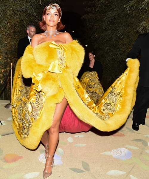 相信大家都對這套印象深刻吧!2015 Met Gala時尚奧斯卡晚宴以「中國風」做為主題,咱們雷雷一身大龍袍震撼全場,不少網友KUSO這身禮服,把「歐姆蛋」放入蕾哈娜的裙襬中,真的太有創意啦!