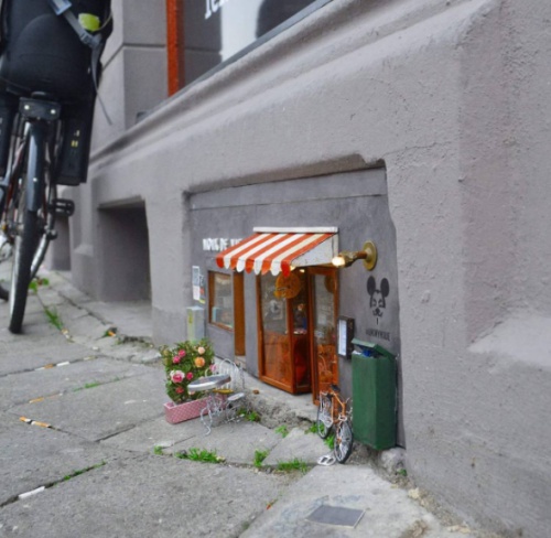 這間超迷你雜貨店最近悄悄地出現在瑞典的街頭,不仔細看(請把視線往腳下90度看去)還不會發現它的存在!不僅門口擺著可愛的迷你桌椅,店鋪玻璃上還寫著「Mickey mouse」的義大利文~原來這是間鼠輩限定出沒的雜貨店啊!