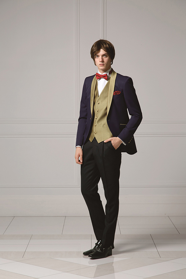 有了公主,怎麼能少了王子?這系列迪士尼聯名系列婚紗,也推出新郎穿的王子禮服,設計元素也是跟童話故事裡一樣。像這套西裝,就跟野獸穿的晚宴服一模一樣呢!