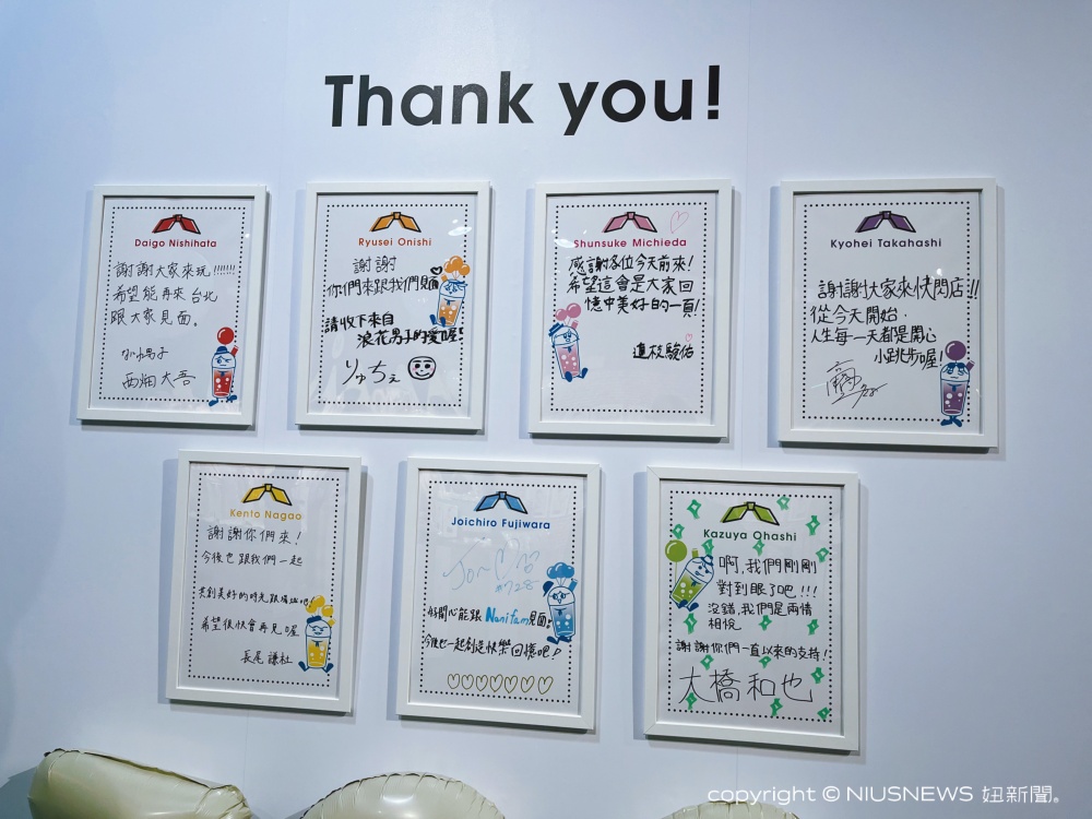 同時,快閃店裡還擺設了浪花男子的中文手寫感謝訊息!七位成員皆用繁體中文寫下對台灣 NANIFAM 滿滿感謝的心意,實在太讓人感到驚喜了~