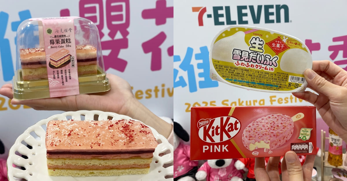 除「伊藤園櫻花風味綠茶」、「韓國櫻花風味雙色棉花糖」、「櫻花季草莓優格脆餅球」等多款新品換上櫻花限定包裝,更獨家販售「韓國熊津決明子茶」;推薦必吃全新「KitKat粉紅莓果脆皮冰棒」,酸甜滋味大人小孩都會愛!甜點部分一定要嚐與七見櫻堂聯名的「櫻花盛開時莓果蛋糕」,莓果慕斯散發荔枝玫瑰與草莓香氣,疊加草莓、櫻桃&覆盆子庫利,層次豐富。