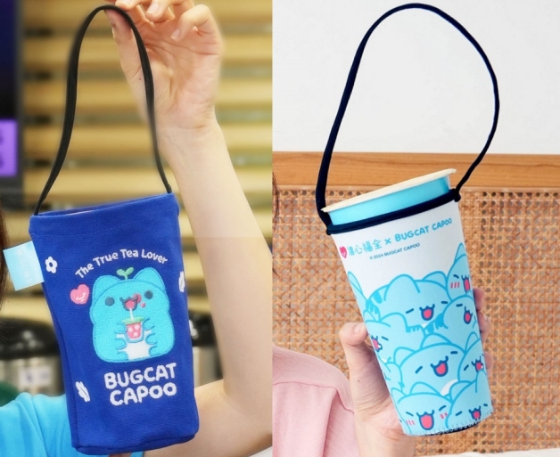 此次清心福全攜手貓貓蟲咖波,推出一系列加購商品,首推「飲料提袋」,保冰溫提袋、帆布刺繡提袋兩款可選;保冰溫提袋使用潛水布材質製作、袋身硬挺,保溫效果好又大容量方便使用:帆布刺繡提袋前後兩面皆有不同圖案,繽紛光澤感的刺繡,可以看見手中拿著飲品、開心的咖波,幸福的模樣超治癒!