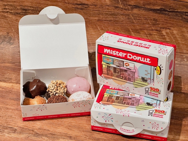 Mister Donut迎接第一百間門市開幕,即日起至6/23推出多項優惠,其中以過去熱門商品「六小福」為概念,打造的全新「六小球」也同步上市,一次能嚐到多拿滋、巧克力蛋糕、歐菲香三種不同口感的圈體,並個別搭配兩種口味所組合而成的小球甜甜圈,造型小巧可愛又好拍!