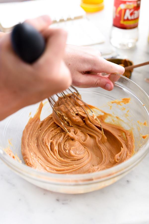 米酥派皮只需要準備三樣食材:穀物、花生醬和玉米糖漿。將1/3杯玉米糖漿加入1/3杯的黏稠花生醬,充分攪拌均勻,使質地軟化,增強風味。