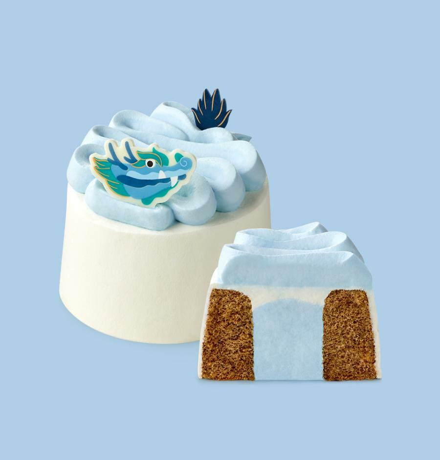 大人感的「藍龍伯爵戚風蛋糕」是逛街休息的下午茶最佳首選!內餡由帶有茶香的伯爵味戚風蛋糕和綿密的鮮奶油組成,藍色的染料來源是水提取螺旋藻製成,可以安心食用,不論是顏值或是美味程度都是非常值得一試的龍年限定餐點!