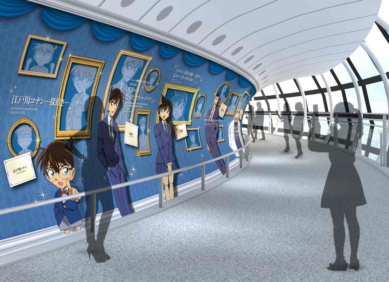 在連接445樓到450樓的「玻璃回廊」之中,也充滿了無限的驚喜!從柯南、新一、小蘭、毛利小五郎,再到阿笠博士等人物,全都將依序現身。同時,展示空間更是以畫廊的模樣亮相,實在太精緻了~