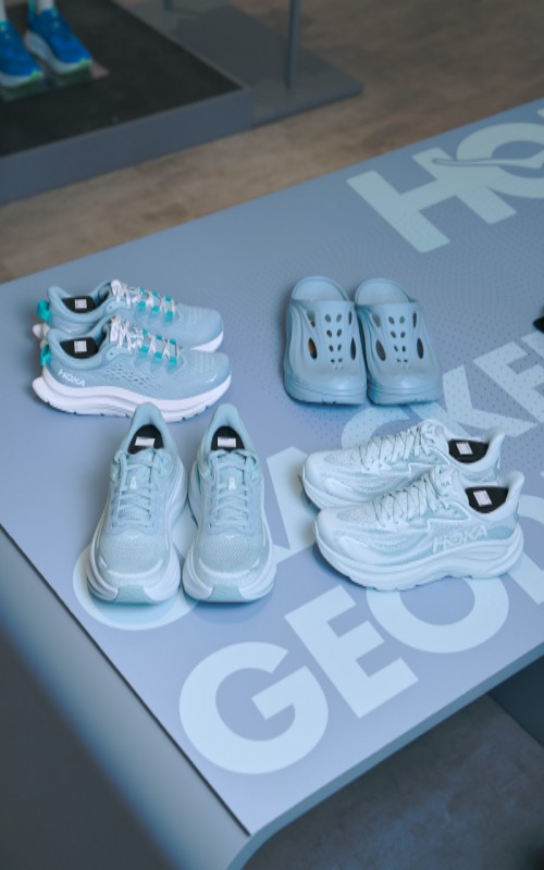 為歡慶開幕,HOKA也祭出遠東 Garden City 門市獨賣款,分別為「CRACKED GEODE系列」及頂級速度訓練鞋「MACH X 2」 。「CRACKED GEODE系列」無疑是本次開幕最別出心裁的驚喜,特別捎來三款為女性打造夢幻的冰藍礦石色系鞋款:HOKA緩震之王「BONDI9」、輕量經典鞋款「CLIFTON 10」、休閒路跑鞋「KAWANA 2」,期待女性跑者從日常訓練到外出走跳皆舒適有型,為夏日穿搭帶來清透亮麗的自信;同系列也搭配超受歡迎、具未來風格的個性鞋款「U ORA RECOVERY MULE恢復拖鞋」供男女款選擇。男女共款的HOKA Mach X 2為跑者之家貼心嚴選的款式,提供給喜歡不斷突破自我的跑者,結合超回彈的 PEBA 中底並強化其滾動性,搭載 Pebax® 推進板設計以增強支撐和推進力,成為推進速度訓練的最佳夥伴,兩款獨家色系「黑/星辰灰」與「白/宇宙灰」,象徵挑戰未知與無垠探索,體現跑者不斷追求屬於自己的星際旅程。