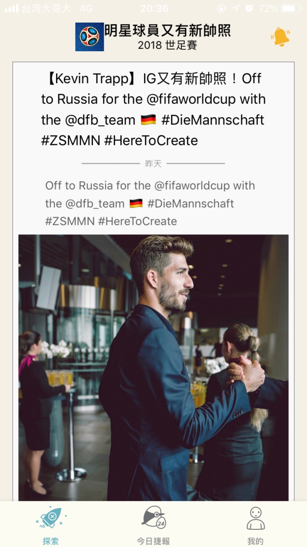 等了四年,2018世界盃足球賽終於正式在俄羅斯火熱開踢!這場國際賽事除了比賽過程備受矚目之外,來自各國的帥哥足球員也是大家關注的焦點,所以手機小姐今天就是要來介紹一款既可以Follow賽事消息,又能一次掌握熱門帥哥球員IG動態的App!