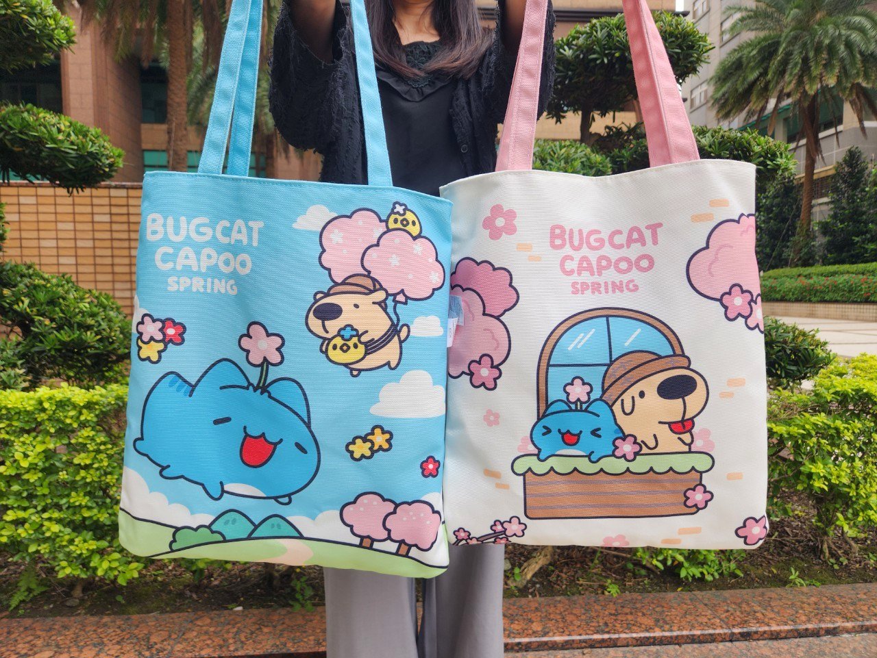 外出系列首推「立體布偶翻轉文青袋」,有藍色與白色兩款,帆布袋上有立體可愛造型,兩款袋子皆有雙面可以隨意翻轉,妞妞們都能照自己的心情改變圖案。