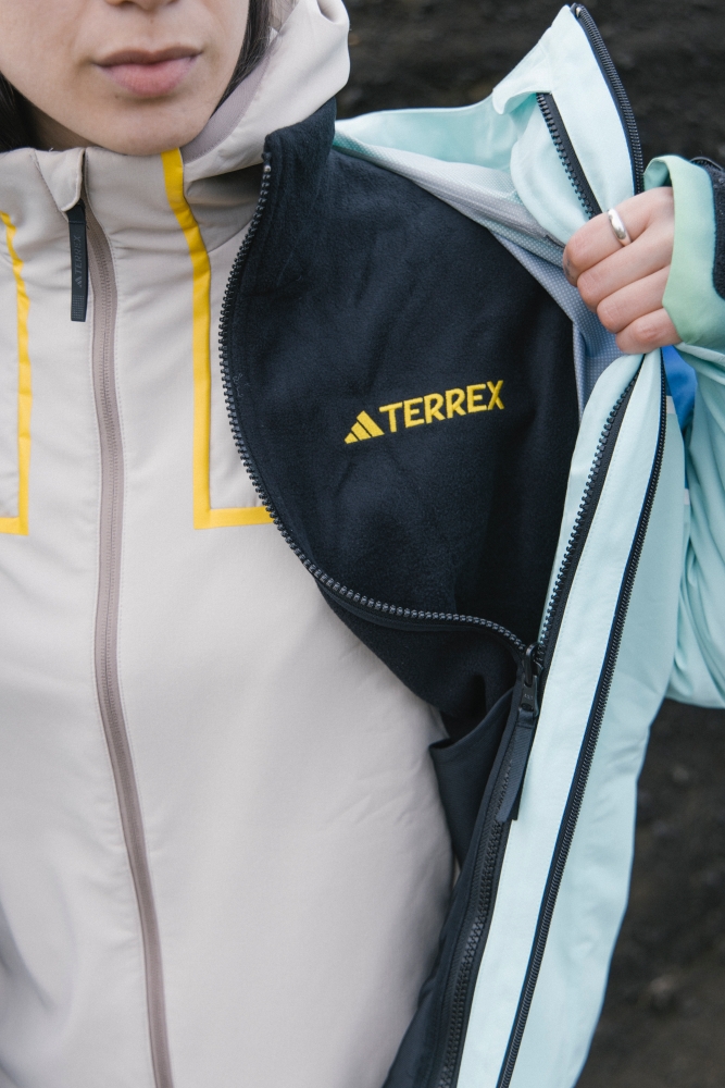 此次adidas TERREX與 National Geographic聯名系列以極光照片為靈感,將極光的影像大面積投射在服飾上,使探險者從裡到外沉浸到大自然當中。該系列的三合一夾克為連帽兩件式設計,男女夾克外觀分別再現了從格陵蘭島上空拍攝北極光的照片,搭配袖臂處的雙聯名LOGO極為搶眼。而夾克外層採用RAIN.RDY防水科技,內層則為抓絨材質,加上可調節式袖口,同時兼顧防水、抗風與禦寒能力,為戶外愛好者在嚴峻的氣候條件中提供強勁的適應力。當天氣舒適時,可以單獨穿著抓絨內層;風雨突至時,可以拉上拉鍊,將內外兩層連接在一起,防水又保暖,更是一款含有再生面料的多功能外套。
