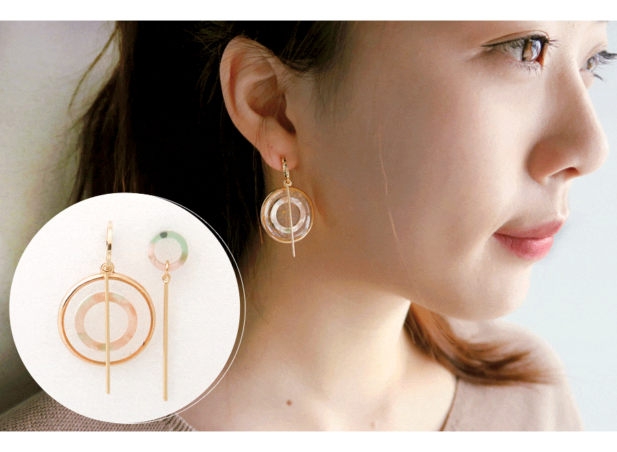 粉彩原石金圓框不對稱耳環