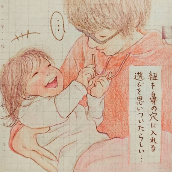 想拿衣服紐帶戳爸爸鼻孔的瞬間