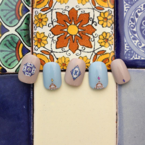 如果你跟妞編輯一樣,是沒有太多預算的小資女,也有簡單獲得時髦復古磚花指彩的方法,就是「磁磚美甲貼紙」,只要貼上去立刻給你華麗的磁磚花紋。