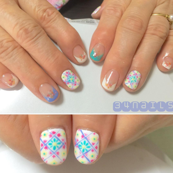 夏天來啦~(歡呼)指彩是不是也要換上繽紛的色彩來感受一下夏天的熱情呢?如果你偏好有藝術感、或是色彩比較繽紛的特別指彩風格,那你一定會喜歡妞編輯要介紹的「磚花指彩」。