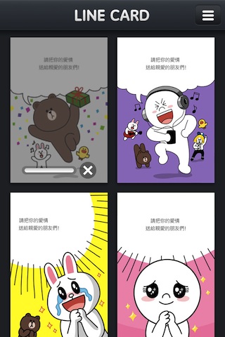 與火紅通訊軟體LINE系出同門的 LINE Card,是一個便利製作心意卡的軟體。除了重要節日必備的生日卡、祝福卡之外,當然也請出了 LINE 貼圖中當家的兔兔、熊大以及饅頭人出場,擔任心意卡主角,讓你簡單幾步驟就能表心意噢。內容相當豐富,且未來還會依季節推出更新的心意卡種類,十分令人期待!