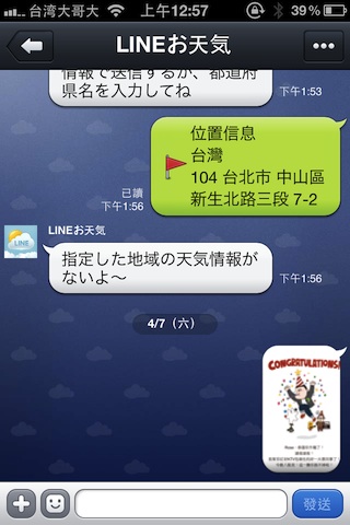 LINE Card內建的信息類電子卡片