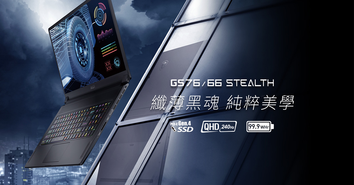 為效能而生的GP76/66 Leopard電競筆電搭載第11代Intel® Core™ i7處理器與NVIDIA RTX 30系列獨立顯示卡,擁有強大而穩定的性能且內斂成熟設計,不論是科技工程運算、高階工程計算或複雜的設計需求,GP76 Leopard皆能完美承接使用者的多工需求,成為最強悍的後盾。採用俐落黑魂設計的GS76 / GS66 Stealth最高搭載最新第11代Intel® Core™ i9處理器與NVIDIA RTX 3080顯示卡,全新GS76 Stealth除了規格升級,更帶來多項特點,包括採用全新銀色塗裝軸承設計、99WHr電池容量以及最高採用QHD超高畫質240 Hz更新率電競面板,不論在白天你是專業的工作者,或是夜晚變身為熱血的重裝玩家,GS76 / GS66 Stealth都將讓你成為都會王者,在茫茫人海中脫穎而出。
