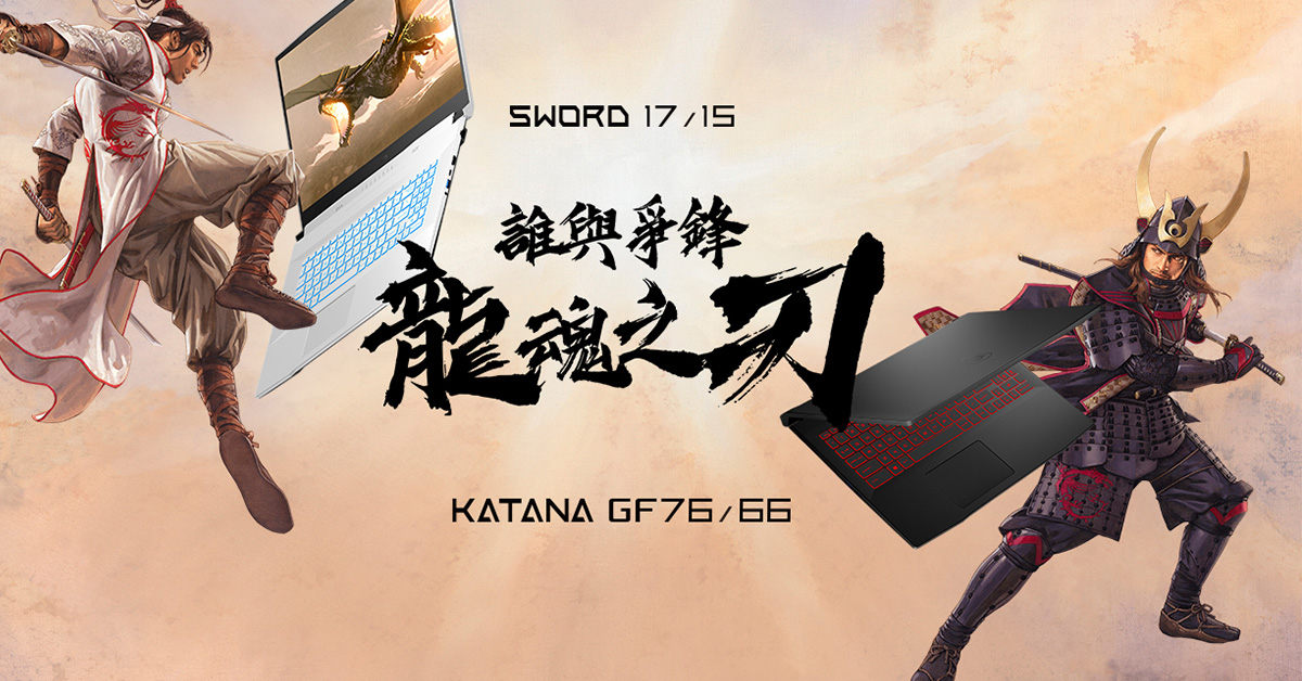 全新Sword / Katana GF系列電競筆電的設計靈感來自於武士刀,並邀請知名的日本專業遊戲角色插畫師長野剛(NAGANO TSUYOSHI)精心打造產品視覺。傳說,在亙古時代,有一把封印著龍魂之力的傳說名刀流傳於世,它鋒利如雷切、堅韌如金石;每次揮舞,將能颳起如颶風般的疾風,每次刺擊,都將燃起漫天火勢;這把傳說名刀由代代從事冶煉鍛造的龍魂一族所打造,沒有任何武器可與之匹敵,人們將它稱為「龍魂之刃」。全新Sword / Katana GF便是MSI為玩家量身打造的「龍魂之刃」,搭載最新第11代Intel® Core™ i7處理器和NVIDIA® GeForce RTX™30系列顯示卡,採用如同鍛造利刃的精密工藝製程,Sword / Katana GF將以優異的效能表現幫助玩家在戰場上克敵制勝。