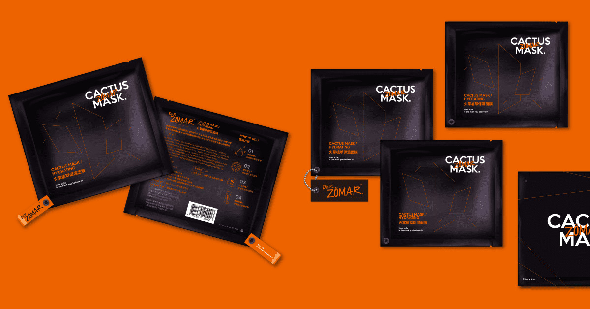 有別於市場對於保養品之既有女性意象,Der ZÖMAR為強調使用者本身的獨特性與個人風格,以具強烈自我意識的手寫字體作為主要品牌識別,並運用黑色與橘色作為主要色彩視覺,賦予品牌自信獨立、時尚潮流個性。在包裝設計上,則以別具巧思的「防水吊牌」和「時尚咬標」增添品牌特色,是保養品也是時尚單品;同時也呼應品牌所闡述之「旅行」意象,可在旅行箱上懸吊面膜,一同於旅程中滋養能量、吸取養分。
