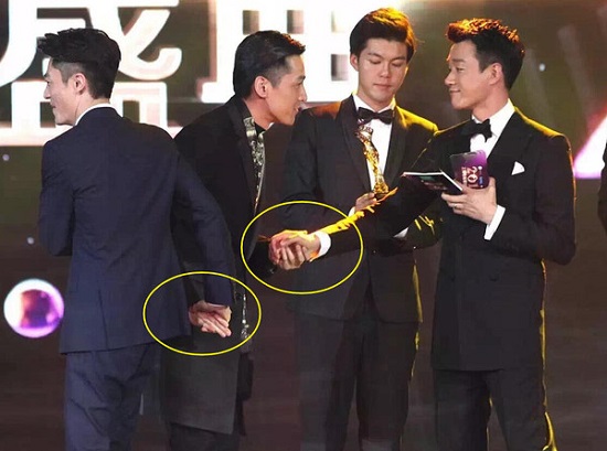 對於獎盃鬧烏龍誤交給霍建華,胡歌笑著說:「其實都一樣!」而胡歌在和佟大為寒暄時,還偷偷牽了一下霍建華的手,甜蜜瞬間立刻被眼尖網友截圖。日前胡歌受訪時被問到胡霍兩人的關係,他也大方告白 表示:「是胡也是霍,是霍不用躲!XD」