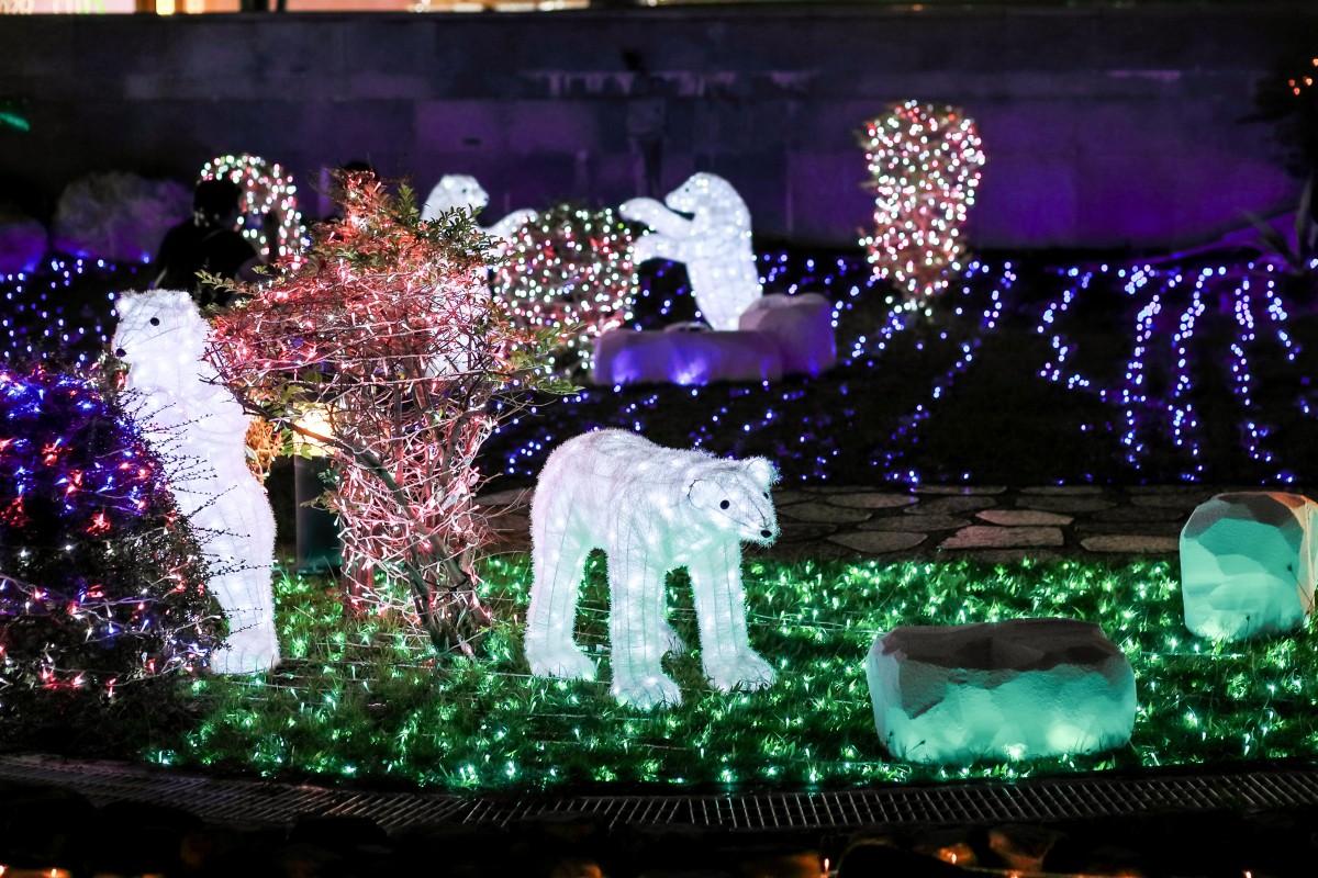 到了夜晚,夢時代馬上轉換成另一種樣貌,美麗的燈飾把浪漫氣氛烘托到極致,絕美霓虹燈讓人陷入迷幻世界,完全不想離開!除了廣場上的燈海佈景之外,夢時代也在外牆上掛滿了聖誕燈飾及造景,跟親愛的他手牽手在一樓散步,好好享受聖誕節的溫馨氣氛吧!