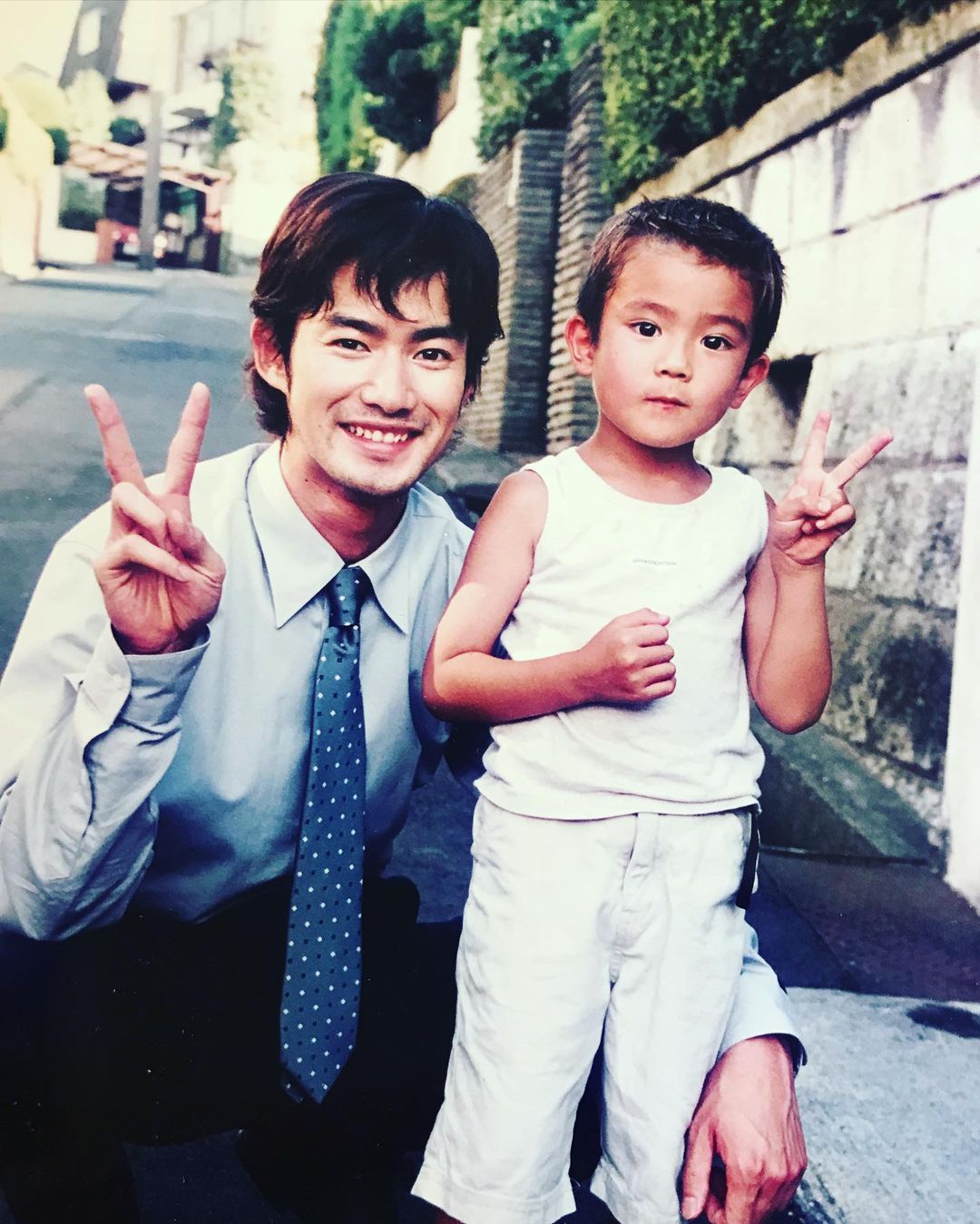 身為出演者之一的新田真劍佑最近在Instagram曬出與竹野內豐的合照,並且還附上了兩人20年前一起拍攝的照片,原來在新田真劍佑5歲時,因父親千葉真一在2001年曾經跟竹野內豐合作拍攝《奉子成婚》,所以就得到與男神的合照。
