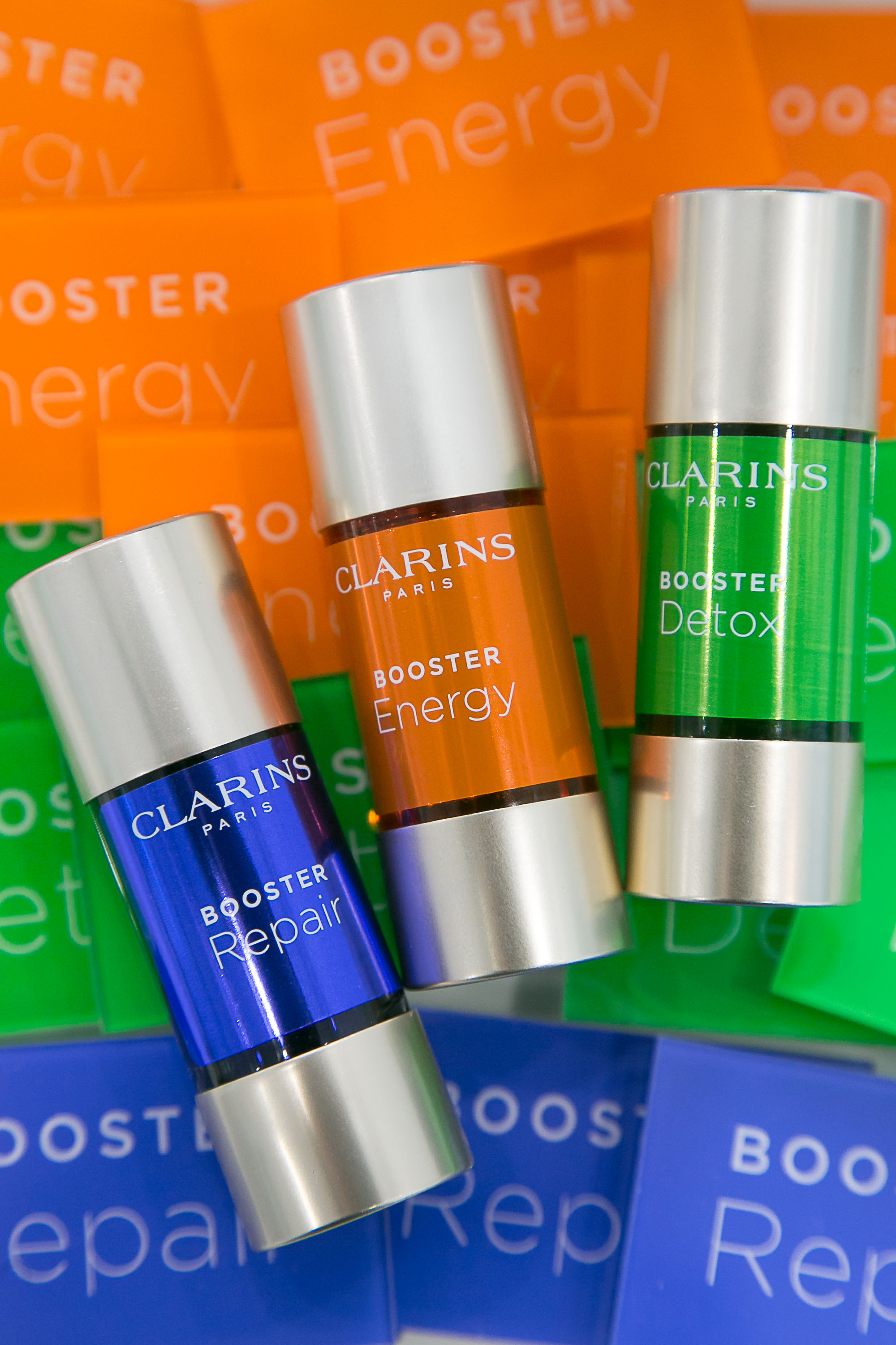 CLARINS這個顏色好鮮豔的能量激活系列,就是針對突發性的問題膚況而設計,小橘瓶適合疲憊肌,(每天超級忙,讓肌膚能量耗盡,變得好暗沉);小綠瓶則適合狀況肌,(常暴飲暴食、暴露在污染環境下,或每晚去派對狂歡,讓肌膚無法負荷);小藍瓶適合受損肌,(正在敏感,或剛做完微整療程,出現不舒服、粗糙、泛紅)。只要加幾滴在平常使用的乳液或霜狀面膜中,就可以有S.O.S功效,快速回復原本完美膚質。