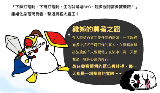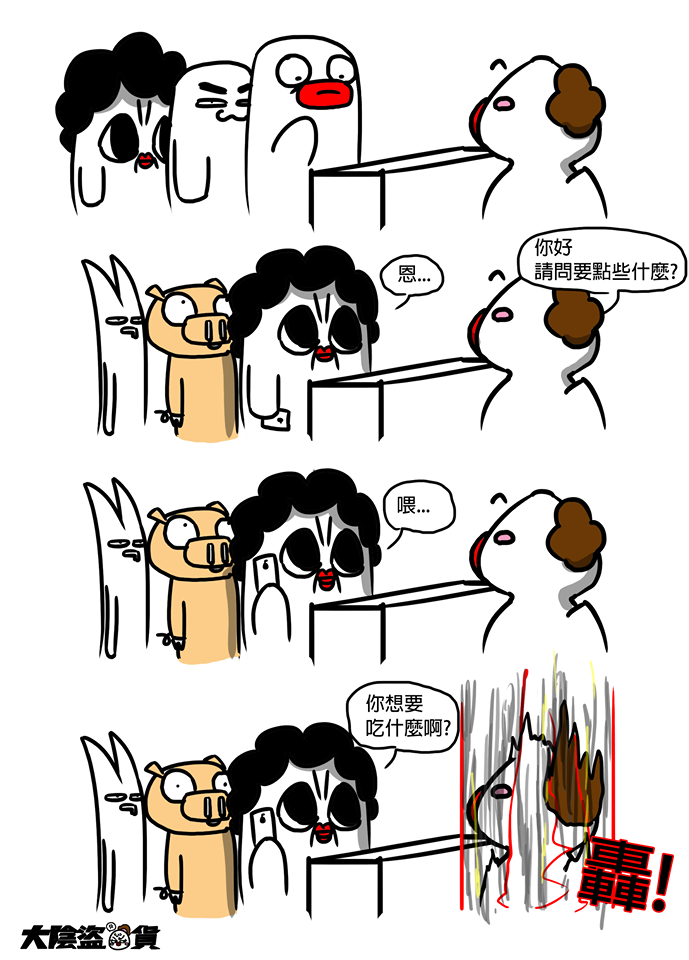 之前都是跟附近的櫃姐聊天得到靈感,或是站櫃時利用閒暇的時間思考晚上要畫什麼,看著客人幻想可能發生的情節。提到站櫃,盜哥與我們分享了以前站櫃時的好笑事情:當時客人請他幫忙看鞋號,因為自己有嚴重近視,所以整個臉靠得鞋子很近,結果客人看了大喊說:「你不要聞啦!好噁心哦!」盜哥當下三條線直接從額邊掉下來(XD),他只是視線太模糊看不到啦!不過盜哥其實不會把自己遇到的客人畫進《大陰盜百貨》中,工作與私事要分得很清楚。