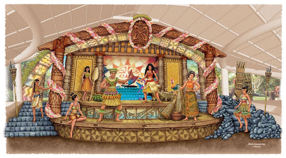 這場表演會以充滿異國風情的戶外表演場地為主,所有的佈置設計都會以電影中莫娜的村莊為靈感。透過扣人心弦的音樂、精湛舞蹈與布偶表演,讓旅客一同身、歷、其、境!