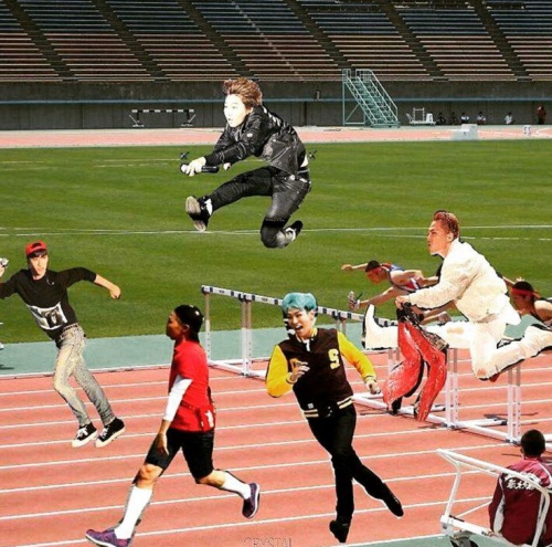 原來這次里約奧運田徑項目,韓國隊派出的不只永裴一個人,連BIGBANG五個人都全員總動員出發啦!只能說粉絲太有才了。
