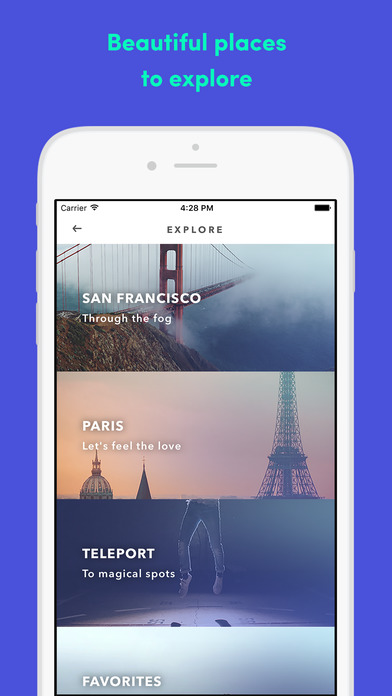 進入拍攝畫面之後,按下Start拍下第一張照片,再沿著畫面中的黃點點分別按下快門,就能拍出360度動態影像囉!還可透過「EXPLORE」探索頁面看到來自世界的景觀,體驗親臨現場的感覺。