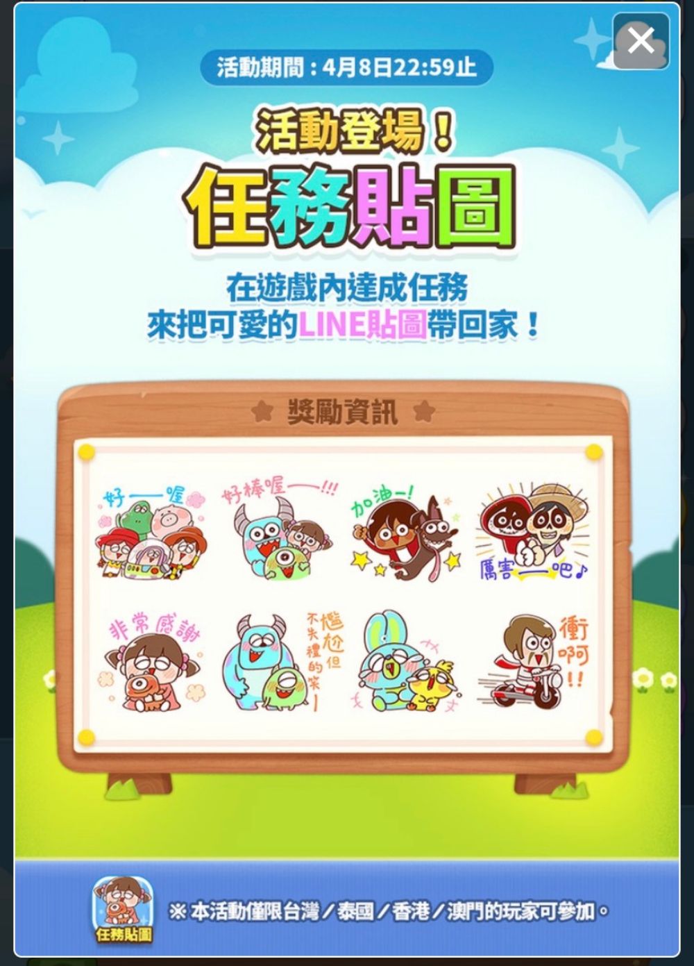 最後介紹的貼圖為手遊限定貼圖,只要在《LINE:Pixar Tower》內完成新的五個關卡,就可以獲得以玩具總動員、怪獸大學、可可夜總會等皮克斯動畫為主角的貼圖喔!(遊戲介紹點我)以上就是本週要推薦給大家的免費貼圖,快趁著期限結束之前載下來使用吧~